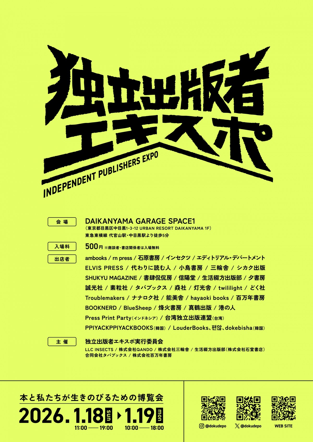 2026年1月18日~19日「独立出版者エキスポ」に出展します。